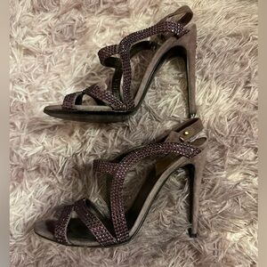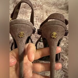 Roberto Cavalli Women Purple Suede Crystal Embellished Strappy Sandal Heel 37 7