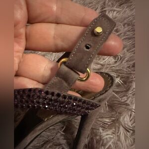 Roberto Cavalli Women Purple Suede Crystal Embellished Strappy Sandals Size 37.