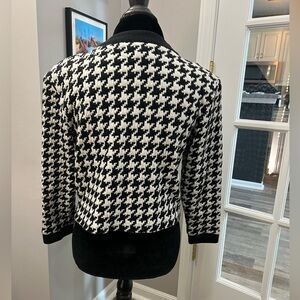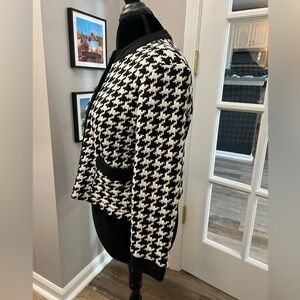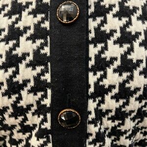 Vintage 80s black and white houndstooth blazer/sweater. Original buttons, two front pockets shoulder pads in great used condition. Could probably use a sweater shaver. Size medium by 1045 Park.