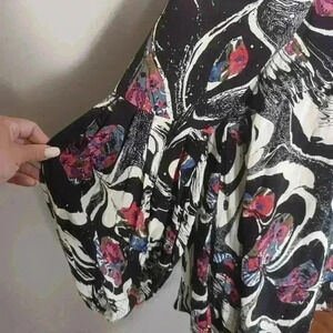 Free People Womens Drift Away Black Print Cold Shoulder Tunic Dress/ Top S