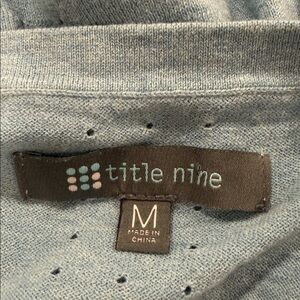 Title Nine Slack Tide Merino Wool Cotton Blend Blue Pointelle Crewneck Top Sz M