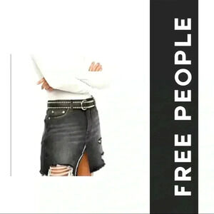 Free People We the Free Black Demin Destroyed Mini Skirt New with tags