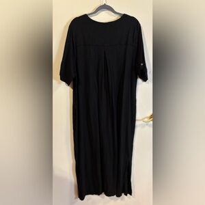 Chicos Maxi Dress Women’s Size 20/22 Black. Button down v-neck, short sleeve, back pleat and side pockets. Comfortable cotton & modal blend fabric. Pre owned in very good condition.