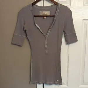 Y2K Hollister Women's Half Sleeve Gray Henley Tee Bella Swan