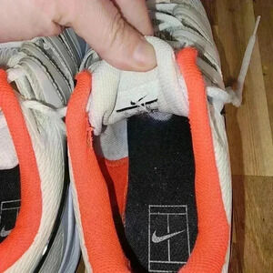 These white sneakers with a solid pattern are perfect for the summer, fall, or spring seasons. Whether you're playing a game of tennis or simply running errands, these Nike Air Zoom Vapor X sneakers are sure to be a favorite in your shoe collection. This shoes have been worn. There is some signs of wear around the toes. But not bad, I did post a picture of it.
