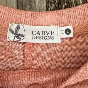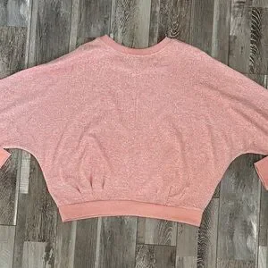 Soft coral sweater with a relaxed fit. Ideal for layering. Comfortable and stylish.