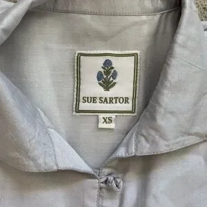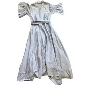 SUE SARTOR Light Blue Maxi Dress with Belt and Flutter Short Sleeves XS Feminine