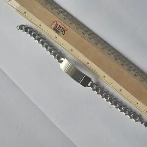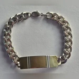 Heavy 34g Men's 8" Sterling Silver ID Plaque Chain Link Bracelet