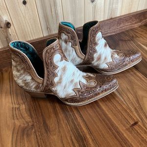 💯Hand Tooled Floral Leather Genuine Hide-on Women Bootie Boot Boho Western Shoe
