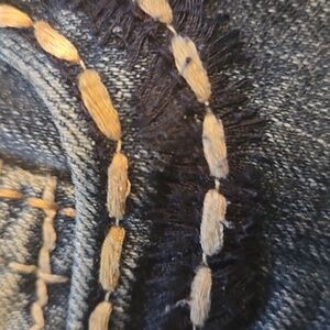 Chic blue jeans featuring embellished back pockets. Ideal for everyday style. Size 28. inseam 31. Rise 8". Leg opening is 14". Excellent condition. Non smoking home.