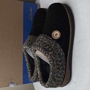 NIB Clarks Suede Women's Clog Slippers Black Sz 9