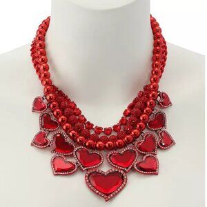 ❤️🔹️Betsey Johnson🔹️ Love Spell Red Heart Statement layered Bib 16" Necklace