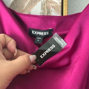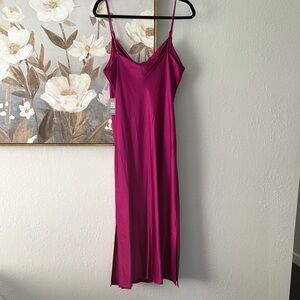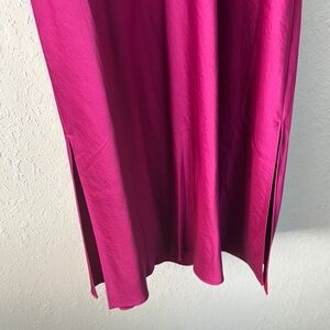 Express Magenta satin slip dress with a flattering silhouette. MIDI length dress with slits on each side with spaghetti straps. Perfect for any occasion. Very comfortable, size large
