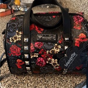 Loungefly Black and Red Floral Backpack