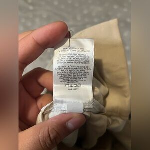 Stylish tan pantsuit from Express. Features a sleek design with button details. Perfect for professional settings.
