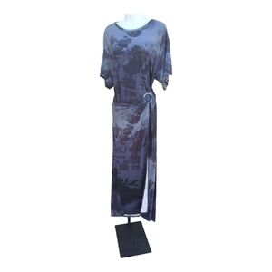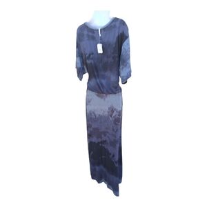 Free People Tie Dye Alyssa Wrap Midi Dress Black Gray Blue XS S