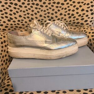 Prada Silver Oxford Women's Brogue Shoe