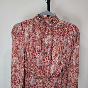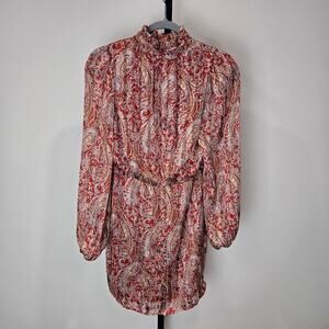 Lulus Mock Neck Long Sleeve Mini Dress Paisley Rust Red Cocktail Hour Chic XS