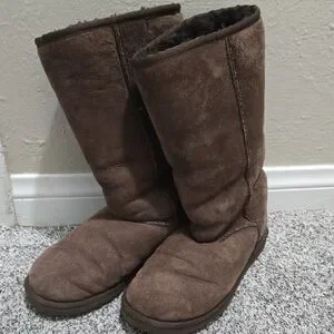 Cozy chocolate suede boots by UGG. Ideal for warmth and style.
