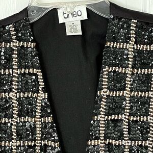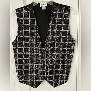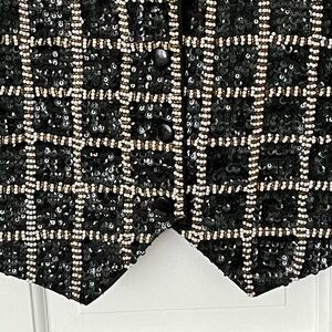 Vintage Theo 90’s Black/Gold/Pearl Checkered Print Sequin Beaded Vest Size M