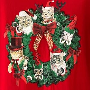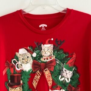 Holiday Time Meowy Christmas T Shirt Cats Wreath Novelty Size XL 46-48