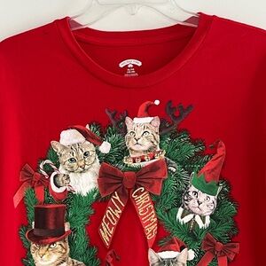 Holiday Time Meowy Christmas Cats and Ribbons Wreath T Shirt Medium (38-40)