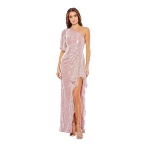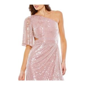 Mac Duggal Sequined Flutter Sleeve One Shoulder Draped Gown NWT