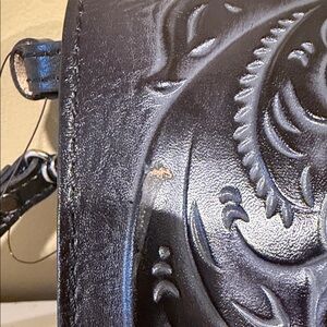 Beautiful tooled Patricia Nash Lanza crossbody bag with wristlet strap. One small flaw on front (see picture). The picture makes it much more noticeable than in person. Beautiful bag. New with tag.