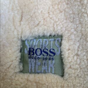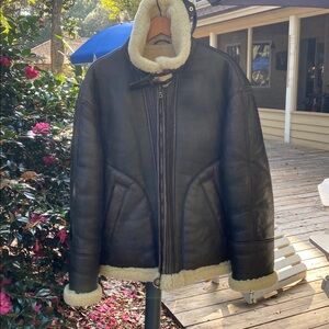 HUGO BOSS stylish cold weather bomber Sherpa jacket, stylish brown leather jacket. Perfect for any cold weather occasions. Size large.