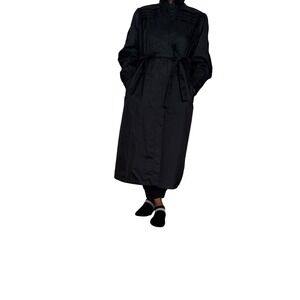 Townhouse Black Midi Trench Coat Long Sleeve Belted Full Button Women's Sz L