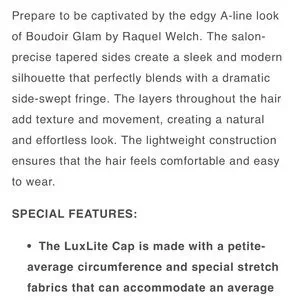 NWOT Raquel Welch Boudoir Glam Petite Shaded Cappuccino RL12/22SS. Gorgeous color! Very popular, frequently out of stock. BRAND NEW without tags, tried on with a cap, NEVER WORN. From a clean and smoke free home.