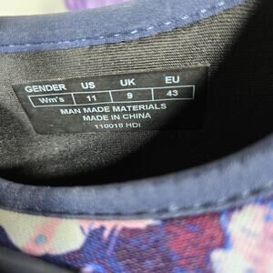 Color: Navy with multicolor floral print collar and purple outsoles.