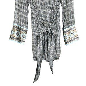 Free People Silky Rillo Shirt Dress Blue Multi XL
