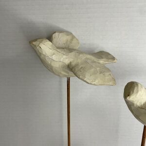 The Willow Tree Birds/Doves pair by Susan Lordi, manufactured in 1999, is a rare and retired figurine set. Featuring white birds in a pair, this collectible sculpture falls under the Willow Tree collection and is perfect for any room in the late 20th century era. The unboxed figurines are original pieces from the Willow Tree brand, making them a unique and special addition to any adult's decor, especially for a retirement occasion. Small peel on smaller bird.Quick Shipping from clean, smoke and pet free home.