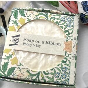 V&A Soap on a Ribbon in the Peony & Lily scent. Key features include: