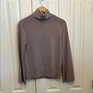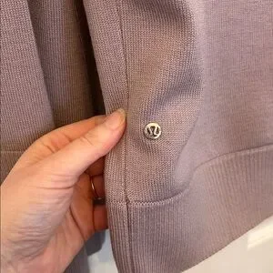 Cozy and elevated Lululemon Athletica merino wool sweater in a soft mauve shade, featuring a funnel neck and bell sleeves for a modern, flattering fit. Breathable merino wool blend provides warmth without bulk—perfect for athleisure, casual wear, or layering in cooler seasons.