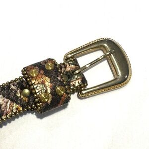 Vintage snakeskin belt with beaded edges and flat studs M/L