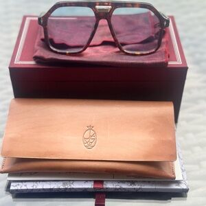 Casius, by Jacques Marie Mage, is a boxy and assertive mid-size navigator sunglass made from Japanese acetate with an expressive brow and double bridge featuring a one-of-a-kind titanium embellishment.