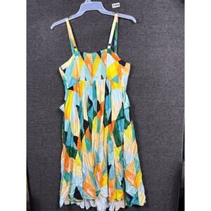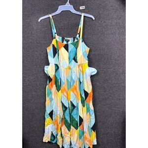 Torrid Midi Sun Dress Womens Size 0 (L) Green Multi Geometric Sleeveless
