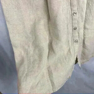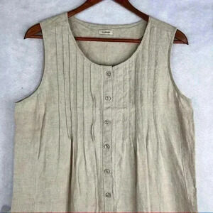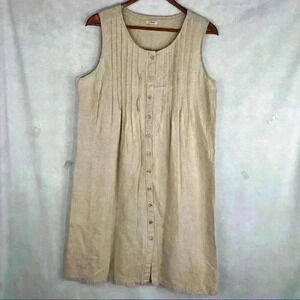 LL.Bean 100% Linen Oatmeal Color Sleeveless Button up Dress Measurement Included