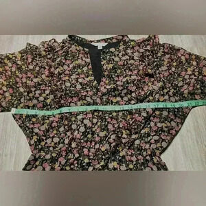 Lauren Conrad Women’s Black And Pink Floral Wrap Dress With Ruffle Detail Large