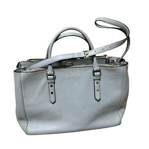Kate Spade Light Blue Pebbled Leather Satchel With Dual Handles & Adjustable Cro