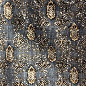 Blue background with tan and white pineapple and leave print