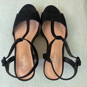 Charles By Charles David Black Wedge Sandals with Ankle Strap