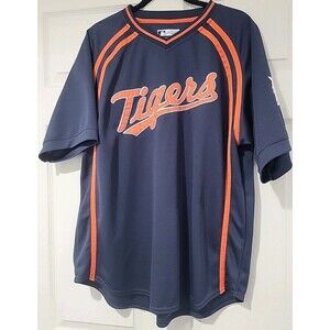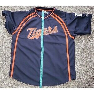 The product is a vintage Y2K Detroit Tigers jersey shirt in navy blue by Majestic. This officially licensed MLB merchandise is designed for men in size XL. Perfect for fans of the Detroit Tigers looking to show their team spirit during the regular season games. Made with quality materials, this jersey shirt is a must-have for any baseball enthusiast.