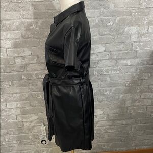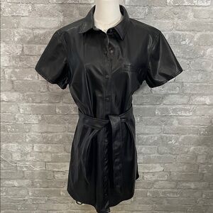 H&M Divided Black Faux Leather Belted Shirt Dress