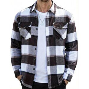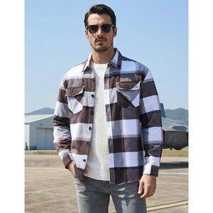 Functional Design: This men's flannel shirt jacket features two chest pockets, buttons down collar, classic large plaid pattern, and adjustable cuffs for a practical fit.