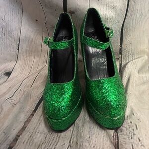 Ellie Women’s Platform Chunky Heel Green Glitter Sequin Maryjane St Paddy’s Sz 7