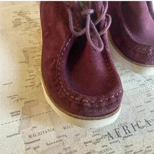 Burgundy suede wallabee - has a couple of dents, but still nice condition.