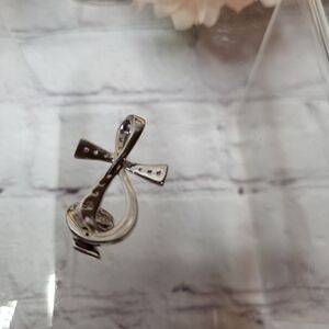 "Sing for Joy" sterling silver necklace pendant. Featuring pink sapphire like stones, 925 sterling silver, and a cross and treble clef design. Pre loved and in excellent condition.